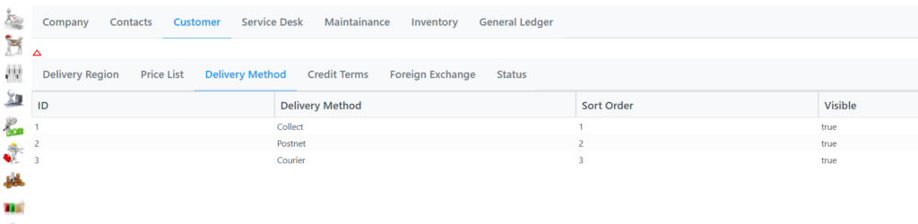 Delivery Method has three default values set as seen in the following screen.