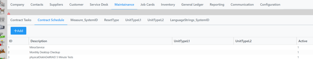 The following window displays Schedules already setup and or to add new Schedules.