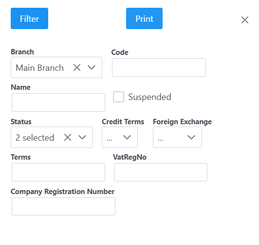 Here you can input the relevant information you would like to filter on, or just filter with no values to bring up all Creditors.