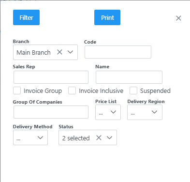On selecting Customers you get the customer filter.
