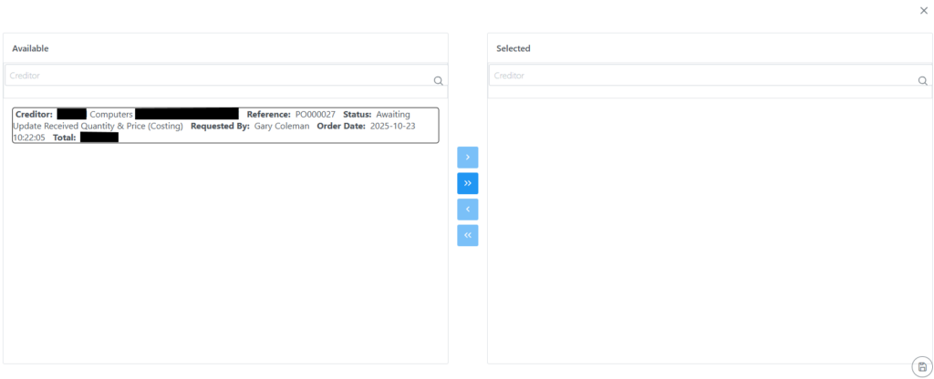 Selecting Suppliers Orders Print Order List for this Job Card will open up a pdf list of all orders linked to the Job Card in printable format.