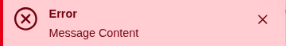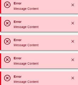An Error Message stays on screen permanently. You can also click the x to close the popup.