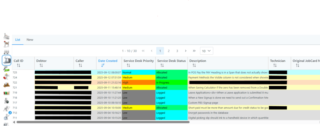 The list of calls will load with the newest call at the top based on Date Created, when selecting one it will present it in detail in the details tab.