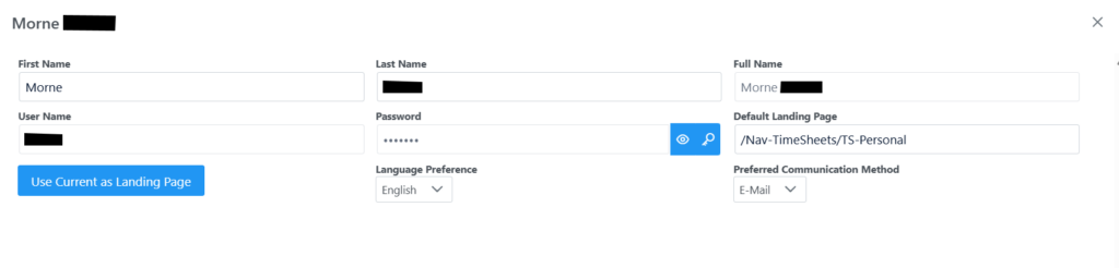 Personal Profile allows you to change your password, language preference and default landing page as seen in screenshot below.
